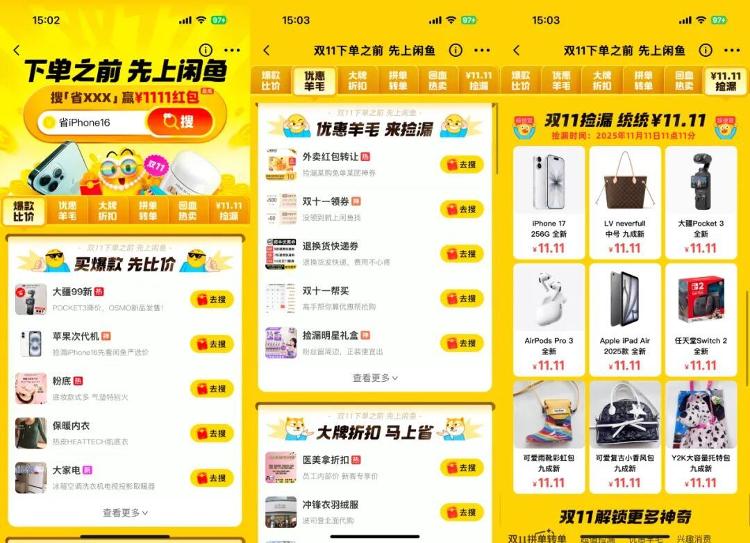 套装大包装礼盒用不完,上闲鱼找个搭子、减少浪费;抢不到的好物,别着急,闲鱼上说不定就能找到有缘人“补位”……今年双11期间,网友忙着在闲鱼上寻找“一线”情报,年轻人“浓度”直线飙升。