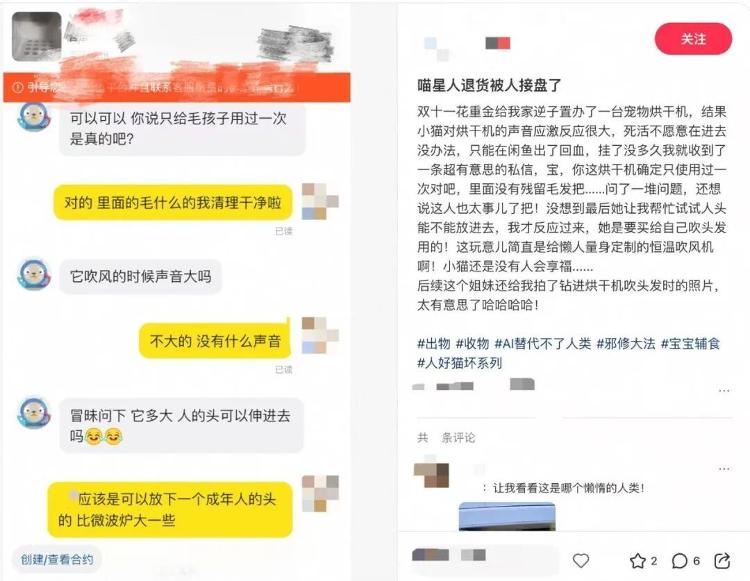 “让我看看这是哪位懒惰的人类啊!”在评论区笑晕了的网友,发现自家猫主子不感冒的烘干机,被另一位买家“接盘”了,还被物尽其用,当成了大风力吹风机。