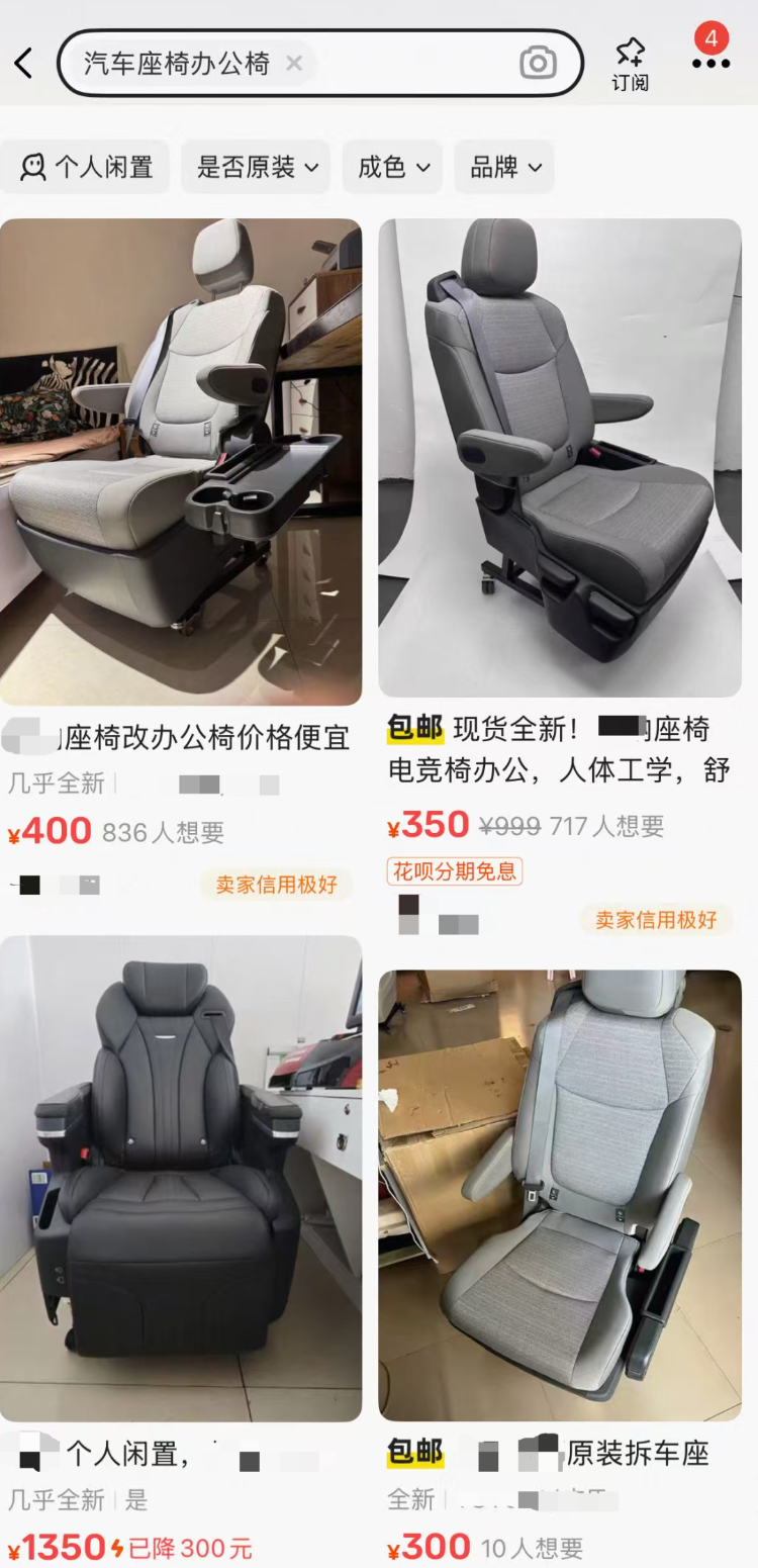 “人体工学椅突然不香了,怒省上万。”闲置汽车拆出来的座椅,还能继续发挥余热吗?双11期间,汽车座椅被爆改成办公椅,闲鱼上搜搜还有人“代改装”。