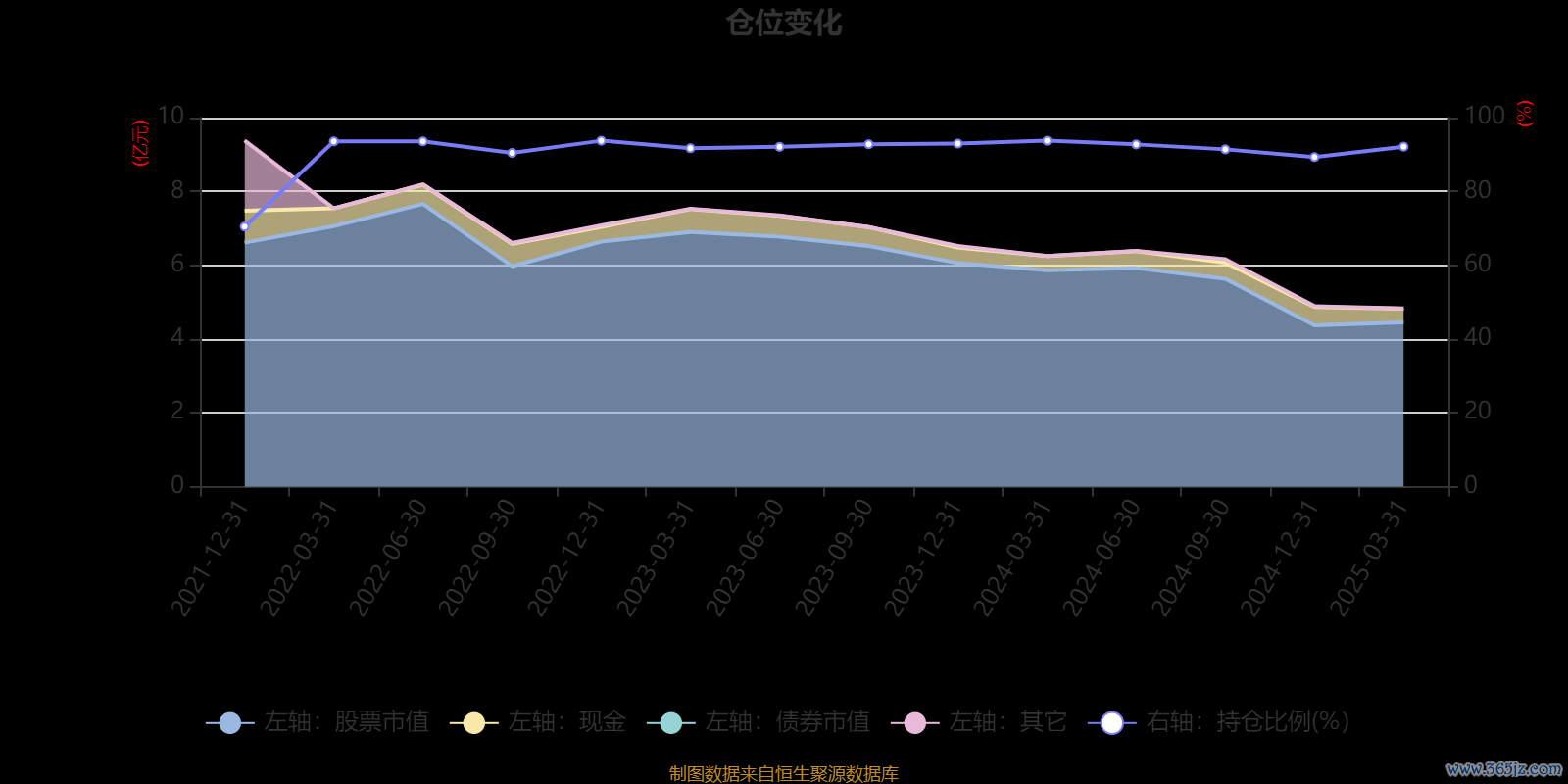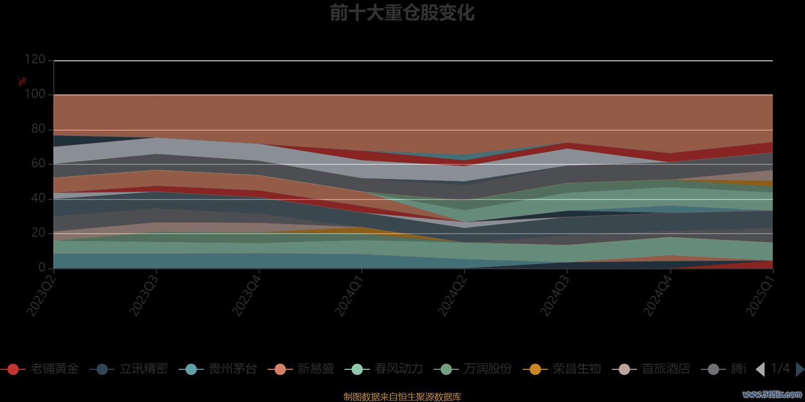 该基金持股集中度较高,近2年前十大重仓股集中度长期超过60%。截至2025年一季度末,基金十大重仓股分别是比亚迪、春风动力、国瓷材料、蓝晓科技、腾讯控股、美团-W、三生制药、老铺黄金、雅克科技、联邦制药。