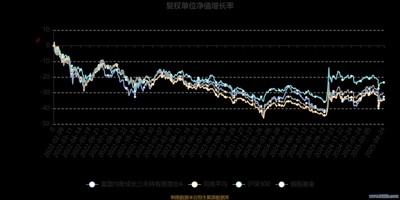 截至4月24日,富国均衡成长三年持有期混合A近三个月复权单位净值增长率为2.91%,位于同类可比基金65/256;近半年复权单位净值增长率为-1.79%,位于同类可比基金139/256;近一年复权单位净值增长率为-1.17%,位于同类可比基金208/256;近三年复权单位净值增长率为-9.54%,位于同类可比基金114/236。