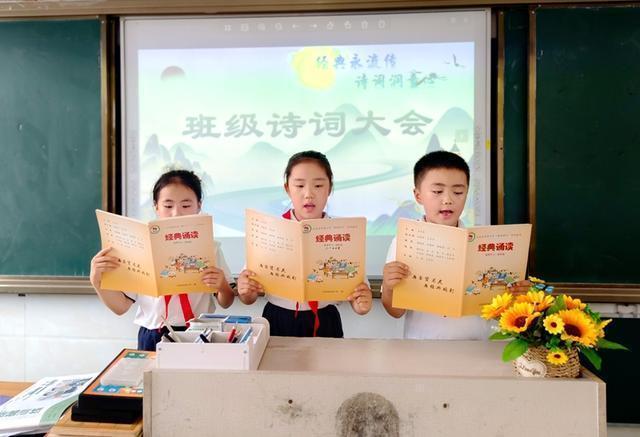 三年级的班级里书声琅琅,各班纷纷开展了集体诵读经典、班级诗词大赛等活动。同学们在诗词的海洋中畅游,在诵读的韵律中感悟中华文化的博大精深搭搭网,语言表达能力与文化自信得到同步提升。